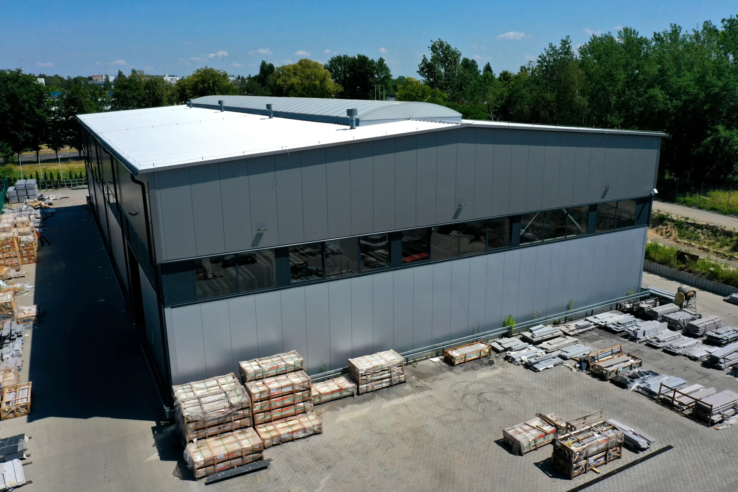 Inwestycja polegała na budowie hali magazynowej o konstrukcji żelbetowej prefabrykowanej i stalowej z obudową z płyt warstwowych przeznaczoną na składowanie na posadzce płyt kamiennych. Dodatkowe doświetlenie zostało zapewnione za pomocą pasma świetlnego w kalenicy oraz okien elewacyjnych. Na potrzeby wewnętrznego transportu składowanego materiału w hali została zamontowana dwudźwigarowa suwnica o nośności 5 t.